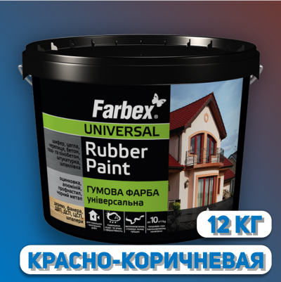 Vopseaua de cauciuc „Farbex” este destinată vopsirii protectoare și decorative a ardeziei, țiglei, oțel galvanizat, aluminiu, metal negru amorsat și netratat, placă ondulată, asfalt, ciment, beton, spumă și beton aerat, cărămidă, tencuială, suprafețe chit, placaj, Particule, TsSP, DVP, suprafețe din lemn, gips-carton, suprafețe lipite de tapet etc.