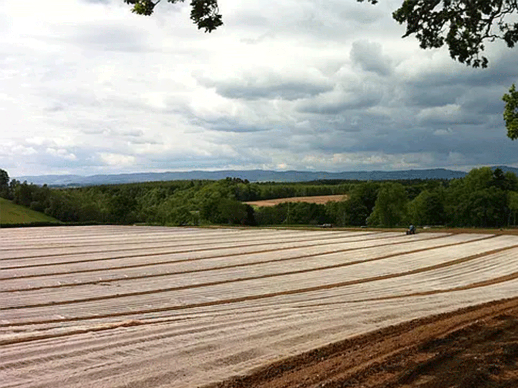 Агротекстиль (также называемый спанбонд или укрывное агроволокно) используется для накрытия урожая на полях\садах раней весной или поздней осенью, тем самым защищая растения\урожай от заморозков.