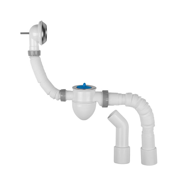 СИФОН В1015 ВАННАЯ НИЗКАЯ 1 1/2, ПЕРЕЛИВ, ГОФРОТРУБА 40*40/50 + ПАТРУБОК SGE09300175 19622