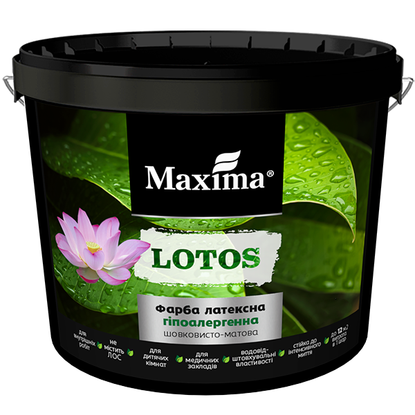 КРАСКА MAXIMA ЛАТЕКСНАЯ "LOTOS" БЕЛАЯ ШЕЛКОВИСТО-МАТОВАЯ 6КГ