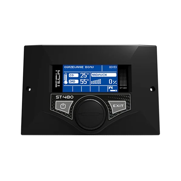 ST-480 z PID — это микропроцессорный контроллер производства компании TECH Sterowniki, предназначенный для управления твердотопливным котлом с автоматической подачей топлива. Его ключевой особенностью является алгоритм zPID, который автоматически регулирует мощность вентилятора и подачу топлива на основе температуры теплоносителя и температуры дымовых газов.