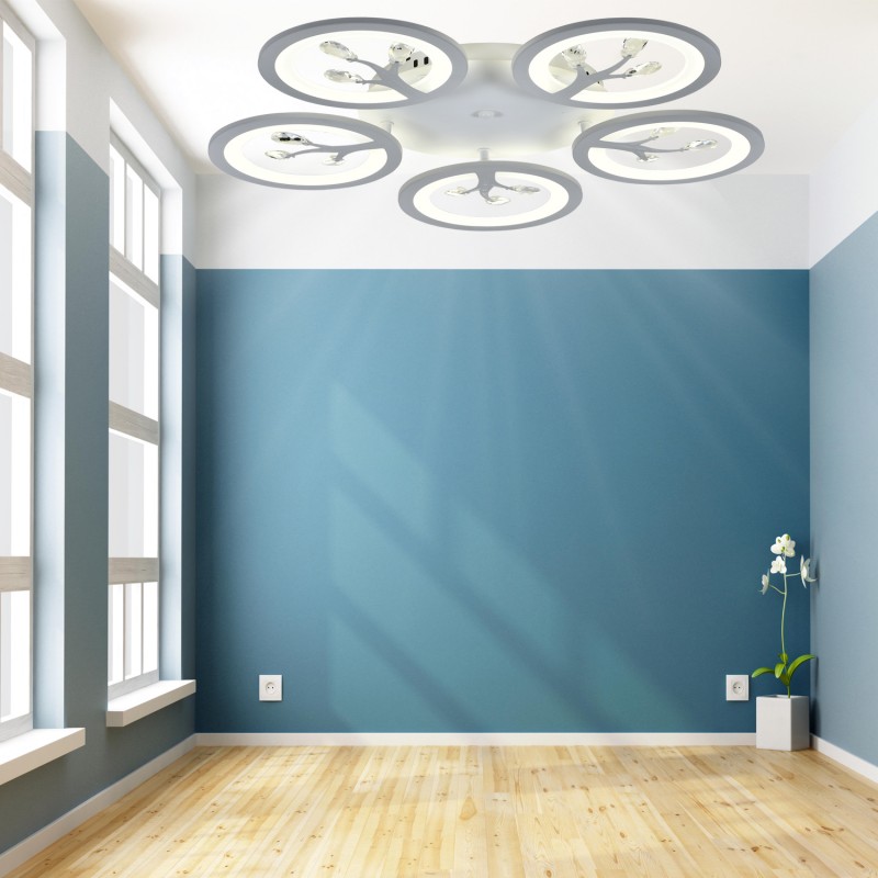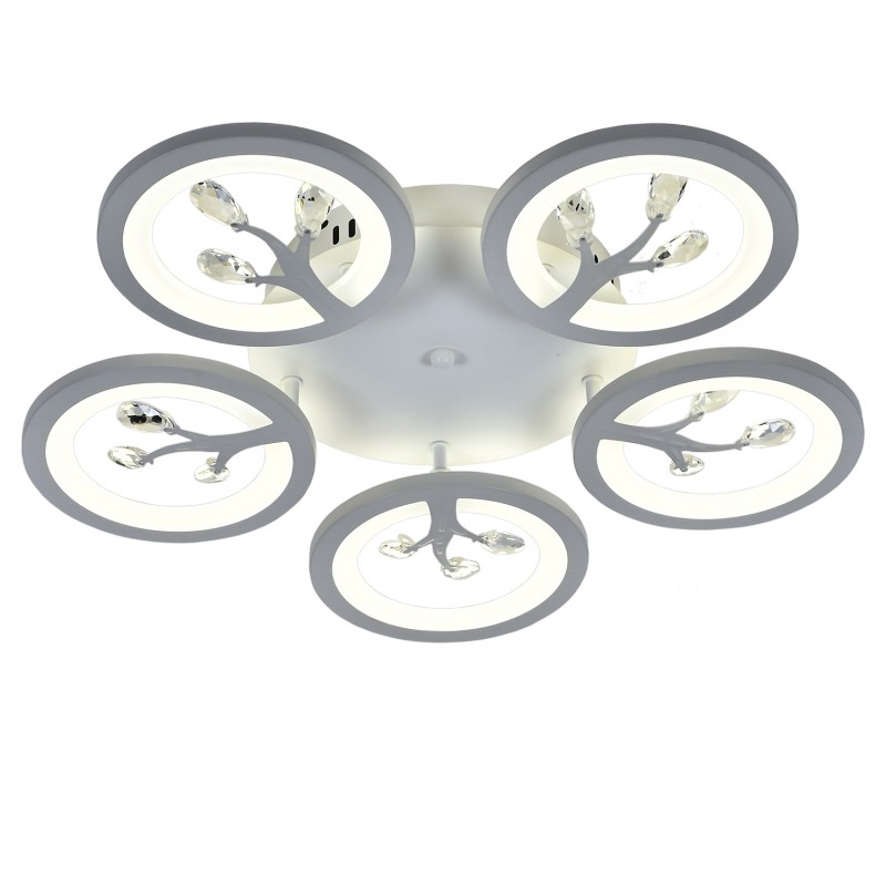 Основание из металла, окрашенного в белый цвет, акриловый диффузор отлично рассеивает свет, декор из прозрачного хрусталя.